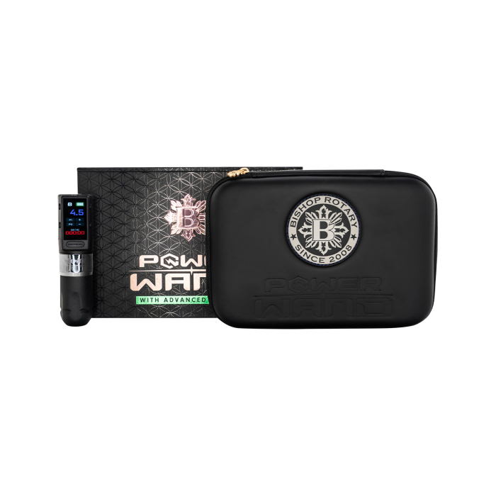 I Bishop Power Wand – Advanced Packer komplett uppsättning ingår tatueringsmaskinen som alla känner till och älskar men med avancerade batterier som gör att man kan ha den mindre på laddning och skapa mer.
