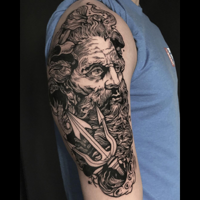 You can learn more from Adrian and the supplies he uses in this tutorial on how to tattoo a blackwork Athena and her Owl!