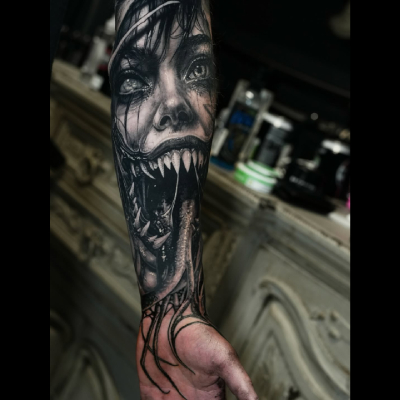 You can learn more from Joshua in this tutorial on how to tattoo blackwork horror!