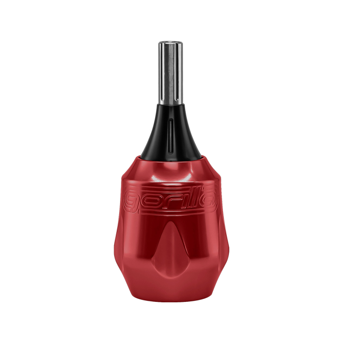 DarkLab Gorilla Click Ergo Grip från FK Irons har blivit ergonomiskt utformat för att passa naturligt i handen. Den stora storleken eliminerar behovet av att täcka den med mycket greppöverdrag. Gorilla Click Ergo Grips profil avsmalnar från 32 till 38 mm, vilkte ger optimal komfort och eliminerar att man klämmer runt greppet när man tatuerar under längre perioder. De många skårorna i greppet gör att fingrarna kan vila perfekt på greppet utan att lägga på mycket tryck, vilkte gör Gorilla Grip idealiskt för lining såväl som färgpackning. Den extra vikten hjälper till med nålpenetration om du använder stora liners eller magnum nålar.