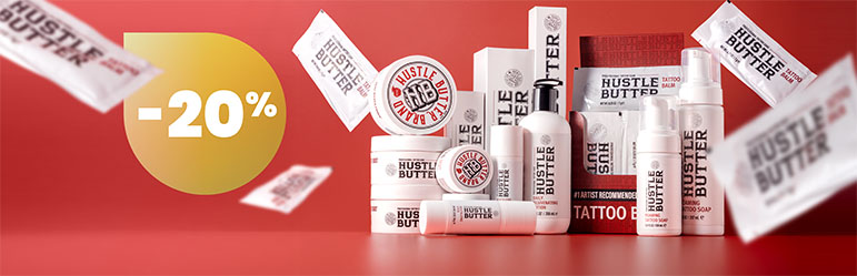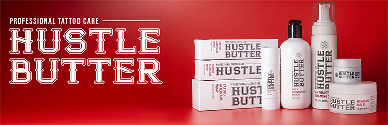 Hustle Butter Deluxe erbjuder nÄgra av de bÀsta tatueringskrÀmerna pÄ marknaden, lÀmpliga att anvÀnda före, under och efter att tatueringen utförs. Denna 100 % naturliga, ekologiska och veganvÀnliga ersÀttning för petroleumprodukter kan anvÀndas för att förbereda huden före tatuering, för att smörja under processen och efterÄt som en eftervÄrdande krÀm till tatueringen.