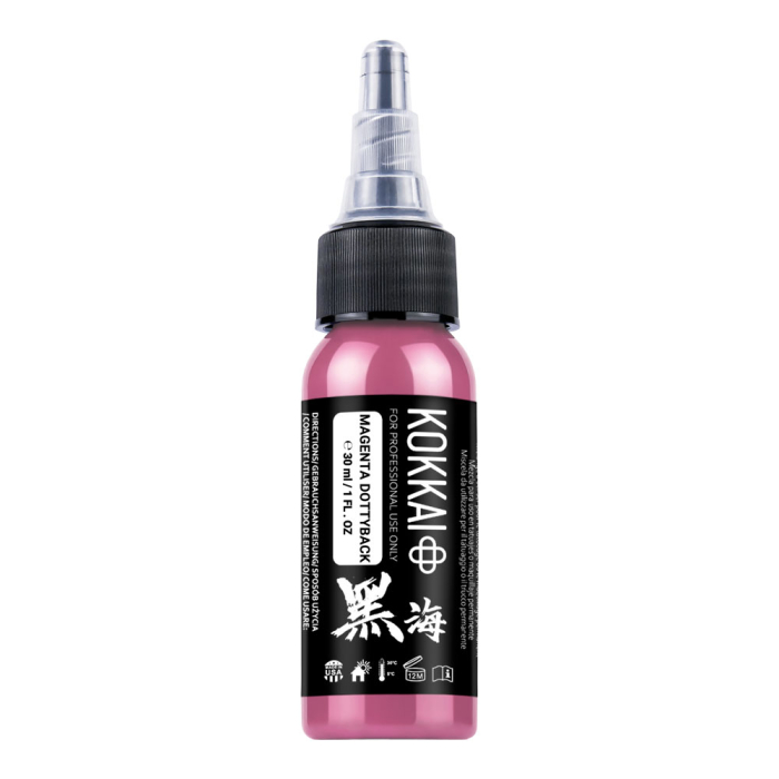 Make your designs stand out with Kokkai Sumi Ink in Magenta Dottyback, a bold and vibrant magenta perfect for creating eye-catching accents and strong colour fills. This highly saturated tone delivers lasting colour across a range of modern tattoo styles.