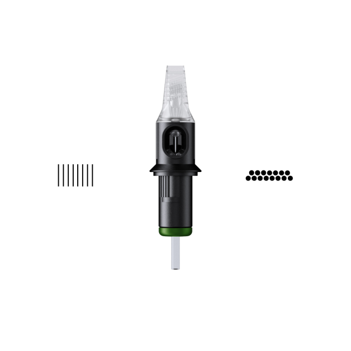 - Jämn bläckfördelning av alla individuella nålar för bättre tatueringsresultat och mindre hudskador