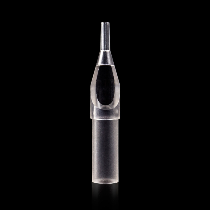 Låda med 50st Killer Ink PREMIUM Genomskinliga Round Engångstippar. Tipparna är individuellt förpackade och steriliserade i bubbelplast. Den genomskinliga tippen ger dig bättre sikt över din nål och ditt bläck.