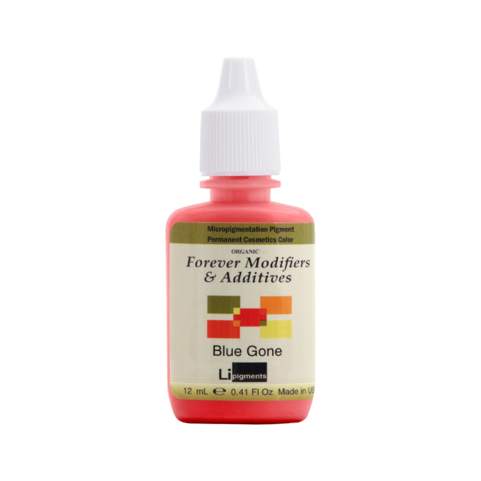 Li Pigments Blue Gone är en orange korrigerare och tillsats som används för att korrigera en blå läpp. Kan också användas för att värma upp någon annan färg när du arbetar på en klient där blå undertoner syns.