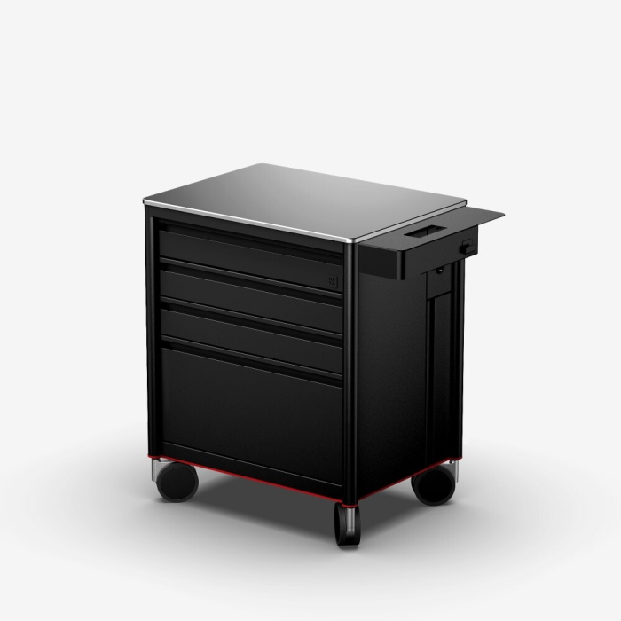 Den har en stor lagringskapacitet: en stor 33cm hög låda för stora föremål, tre mindre och en på sidan som han hålla upp till 108 bläckflaskor. De fyra lådorna på framsidan kan anpassas efter dina önskemål. Den lätta bänkskivan är tillräckligt stor för att hålla allt du behöver och den är lätt att rengöra. De fyra elutagen och 2 USB portar kommer att driva all din tatueringsutrustning. Meta Workstation är helt gjord av aluminium.
