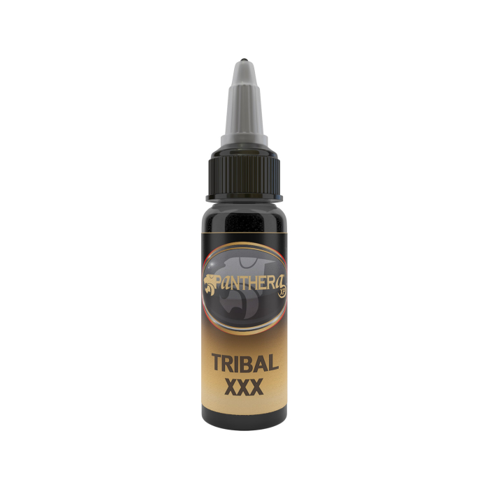 Panthera XXX Tribal är Pantheras mörkaste svarta. Dess mix garanterar en djup och sammetslen svart som förblir supermörk när den väl har läkt. Idealisk för fyllnader men kan också användas för solida linjer.