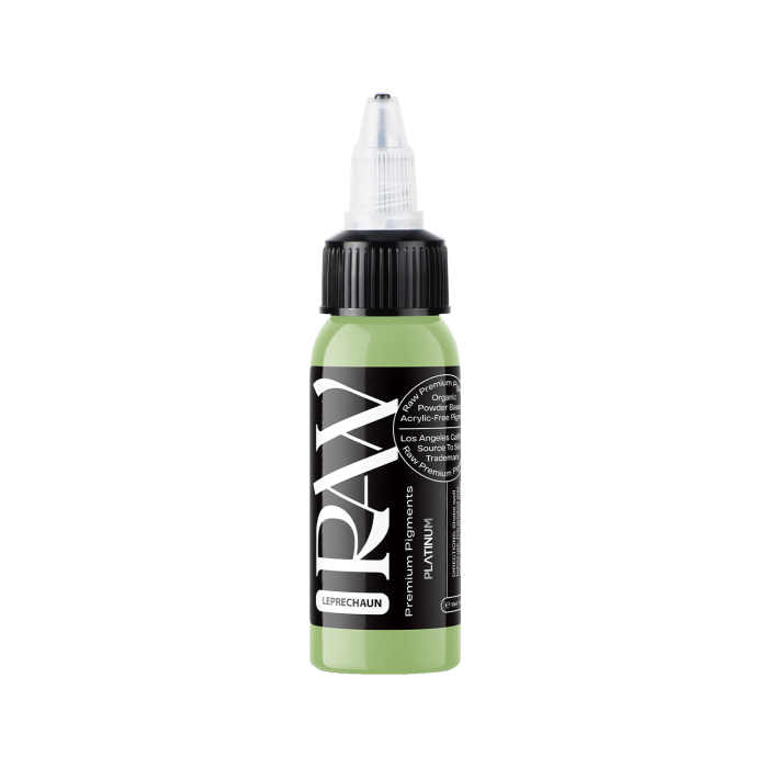 Leprechaun är ett ljust, ljusgrönt tatueringsbläck från Raw Premium Pigments EU REACH-kompatibla Platinum-serie.