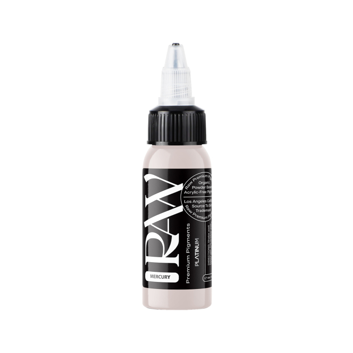 Mercury är ett pastellgrått tatueringsbläck från Raw Premium Pigments EU REACH-kompatibla Platinum-serie.