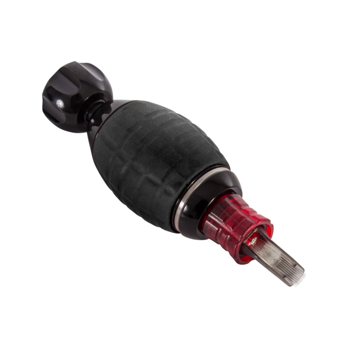 Stigmas patrongrepp går att skruva på alla kompatibla Stigma Hybrid eller Stigma dedikerade patronmaskiner. Detta grepp har ett avtagbart greppskydd av silikon för extra komfort, finns i två olika tjocklekar. Två silikonskydd ingår i greppet, ett i svart och ett i rött, det betyder att du kan byta ut det svarta silikonskyddet till det röda om du vill. Greppet väger bara 55 gram.