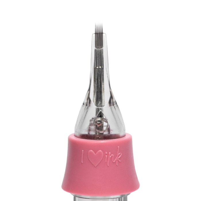 PIXL-nålpatroner är designade av PMU-konstnären Tina Davies och har nålar i 304 rostfritt stål av kirurgisk kvalitet i transparent hölje, med en mjuk silikonavsats för förbättrad kontroll med fingret samtidigt som tröttheten i handen reduceras. De långa koniska nålarna är extra skarpa och orsakar minimalt trauma under behandlingen.