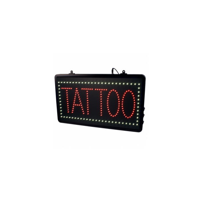 Du kan hänga upp tatuering LED skylten i din studio för att skapa en autentiska känsla! Komplett paket med kedja och pluggas direkt in i ett huvuduttag med hjälp av en ungefär 1900mm lång ledning. Skylten har fyra olika inställningar: